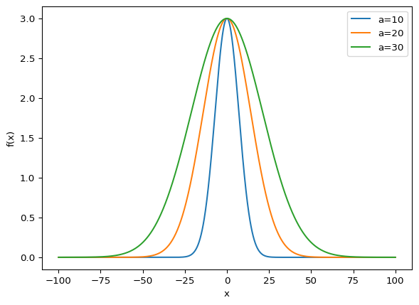 Consider the function \(f(x) = 3e^{-(x^2/a^2)}\).