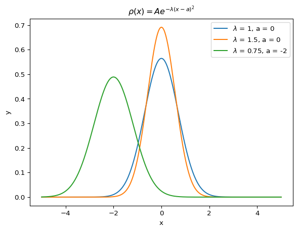\[\rho(x) = Ae^{-\lambda(x-a)^2}\]